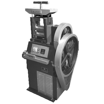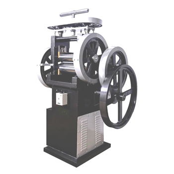 This is a lightweight portable mill, which can also be fitted with bangle design roll. It has been redesigned to facilitate working by removing the front support bars in front of rolls and taking the same underneath in the base.